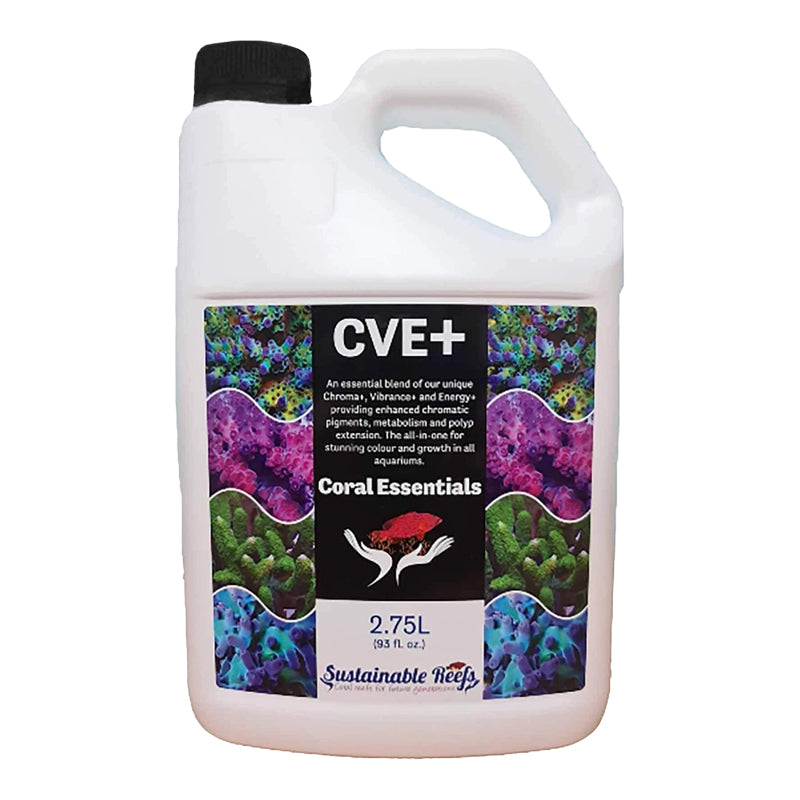 In keeping with our goal of simple reefing we developed our Coral Essentials CVE+ with all aquarium owners in mind.  Formulated with a special mix of our Chroma+, Vibrance+ and Energy+ products, blended perfectly to give you an all-in-one marine aquarium additive like no other. Keeping all the same magic qualities and amazing results of the individual bottles, but in a convenient single dosage formula that sure packs a punch for any marine aquarium. Nothing gives your tank a colour boost like Chroma+, nothing gives your tank an activity boost like Vibrance+, nothing gives your tank a feeding boost like Energy+. Dosing the best made easy, just for you.