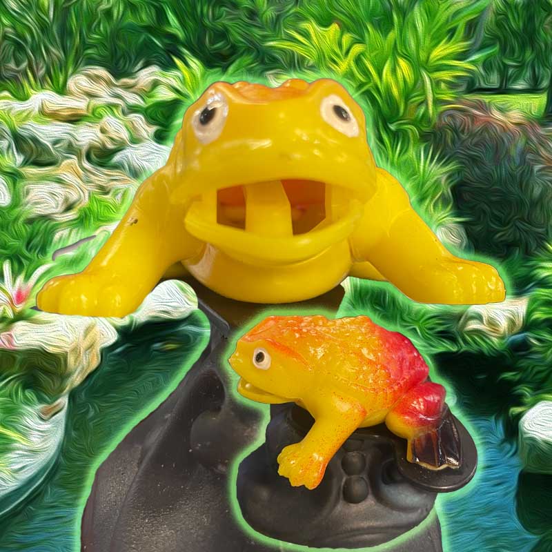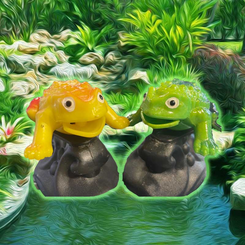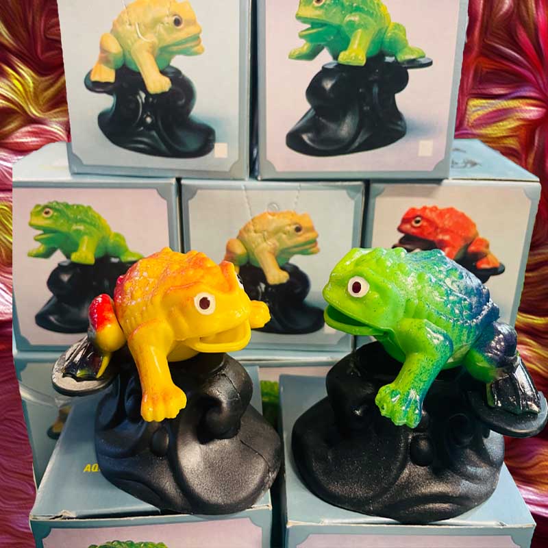 These Frog / Toad / Thingy's will just sit in your tank..... Or connect an air pump + tubing up their..... BACK AREA..... and BUBBLES COME RIGHT OUT OF THE.... MOUTH! ( pump and stuff sold separately)