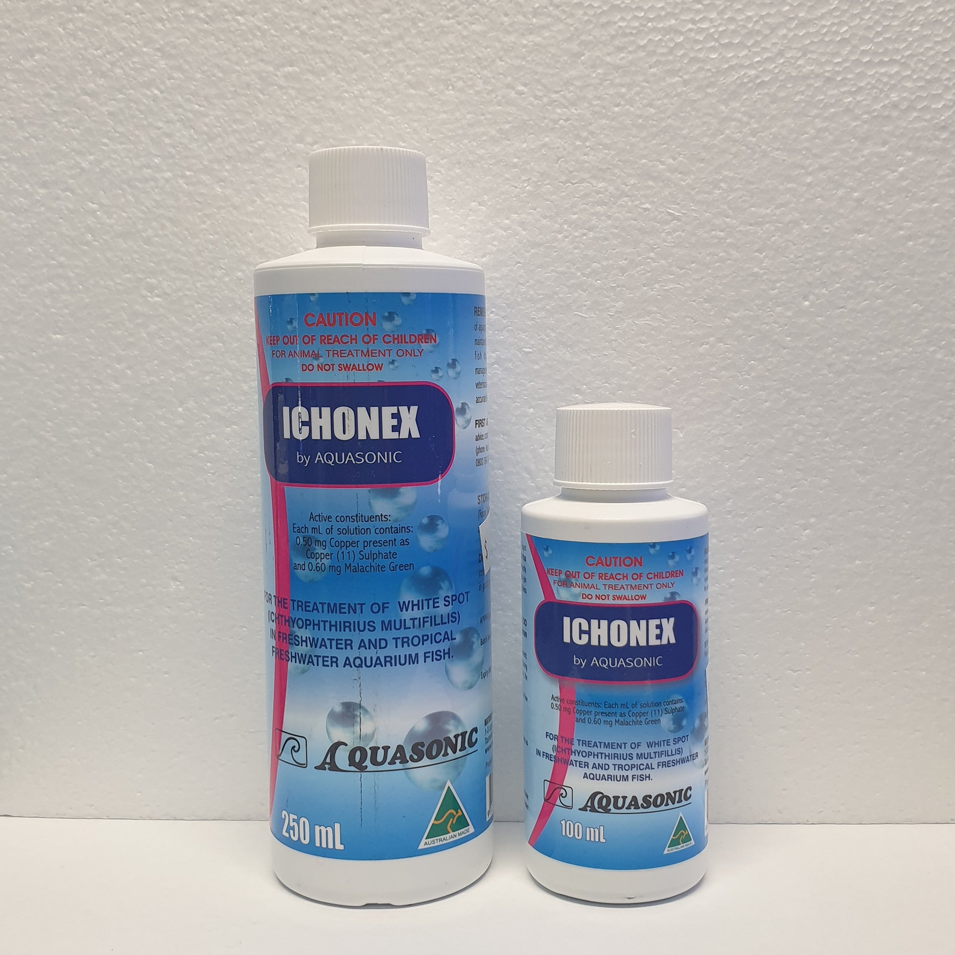 Ichonex assists in the treatment of whitespot (Ichthyophirius multifillis) disease, without the toxic effects of conventional treatments and without staining.