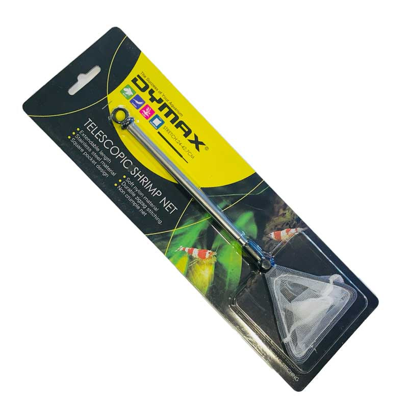 Dymax telescopic shrimp net is made of high quality nylon that has a pocket design that will not crumple. This provides a a more steady and harmless catch while transferring or separating shrimps, bettas and other delicate fish.